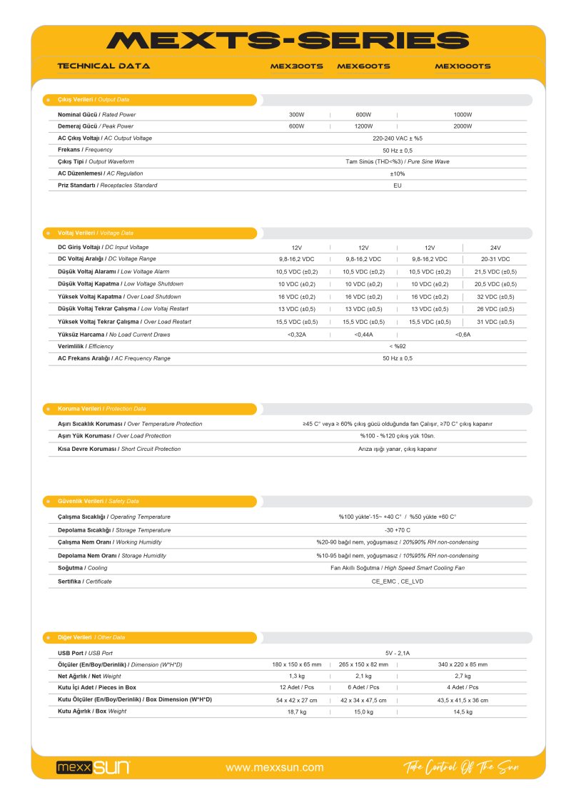 MEXXSUN 12 VOLT 1000 WATT TAM SİNUS İNVERTERLER
