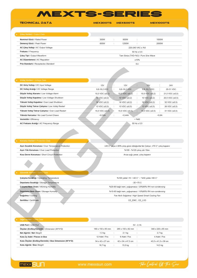 MEXXSUN 12 VOLT 300 WATT TAM SİNUS İNVERTERLER
