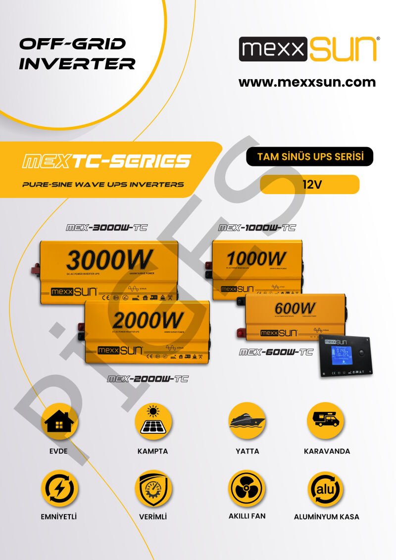 Mexxsun Tam Sinüs UPS (Remote Ekran) 12V 600W, kampçılık, karavan, denizcilik ve yedek güç uygulamaları için ideal bir çözüm sunar. Bu yüksek performanslı tam sinüs dalga invertör, enerji tasarrufunu en üst düzeye çıkarırken, hassas elektronik cihazlarınız için güvenli ve temiz enerji sağlar. Mexsun'un kalitesi ve güvenilirliği ile birleşen MEX600TC, enerji ihtiyaçlarınızı karşılamak için mükemmel bir tercih olacaktır.