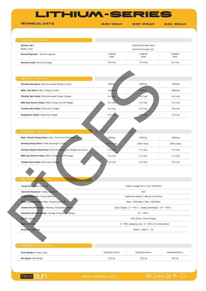 MEXXSUN Lityum Akü 12,8V 100Ah (LiFePo4) 1280Wh