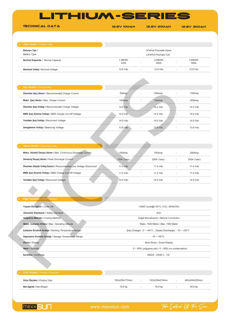 MEXXSUN Lityum Akü 12,8V 300Ah (LiFePo4) 3840Wh