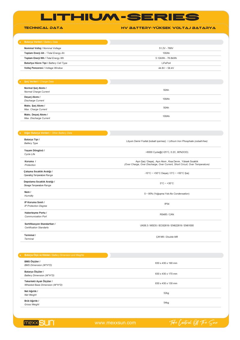MEXXSUN Yüksek Voltaj Lityum Akü 30.72 kWh