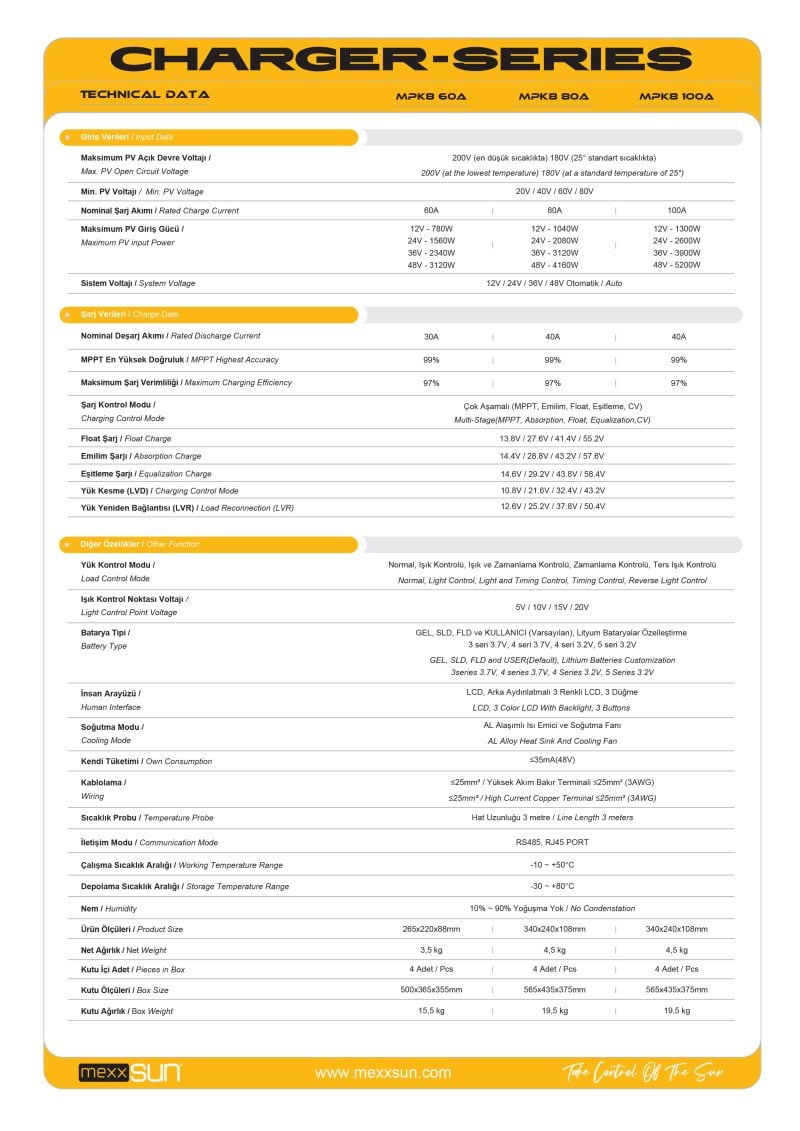 MPK8 MEXXSUN 60A MPPT SOLAR ŞARJ CİHAZI 12/24/48VOLT YENİ SERİ