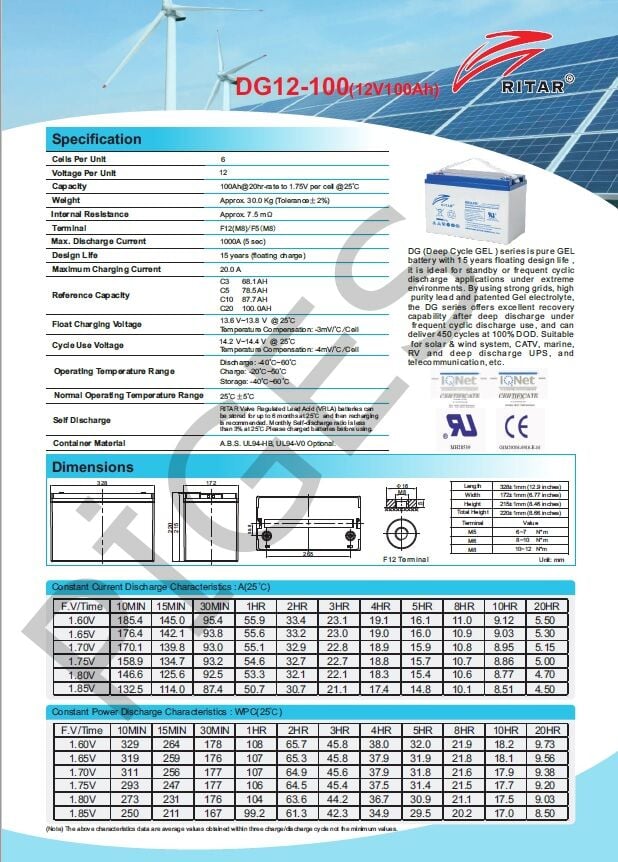 RİTAR DG12 VOLT 100 AMPER JEL AKÜ