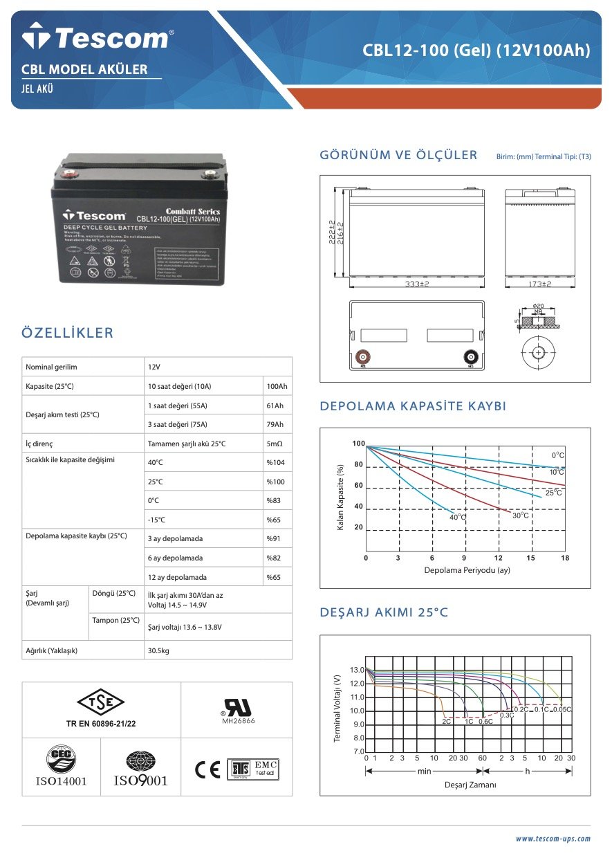 TECCOM COMBATT SERİES 12 VOLT 100 AH JEL AKÜ TECCOM COMBATT SERİES 12 VOLT 100 AH JEL AKÜ isimli SOLAR JEL AKÜLER kategorili TESCOM markalı ürünü 6.525,00 TL satın alın. TSCM12-100CB