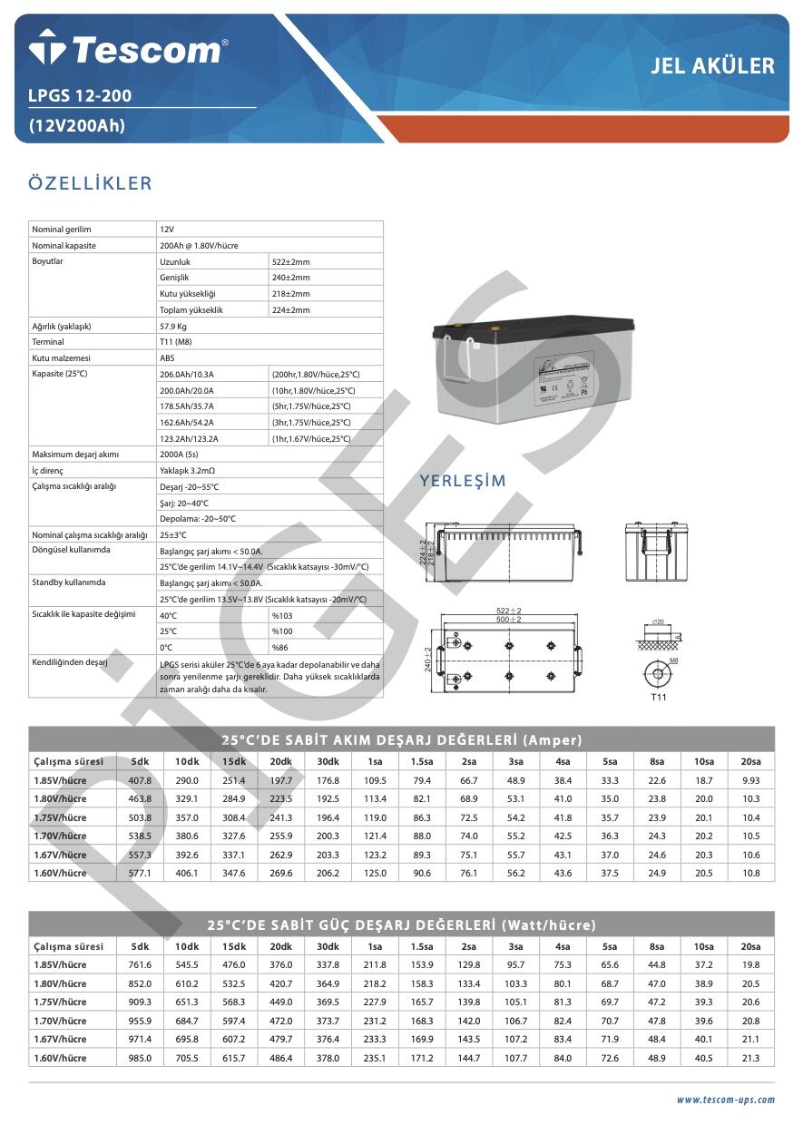 TESCOM LEOCH 12 VOLT 100 AH JEL AKÜ