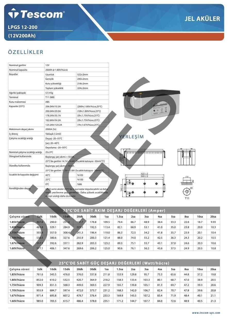 TESCOM LEOCH 12 VOLT 150 AH JEL AKÜ