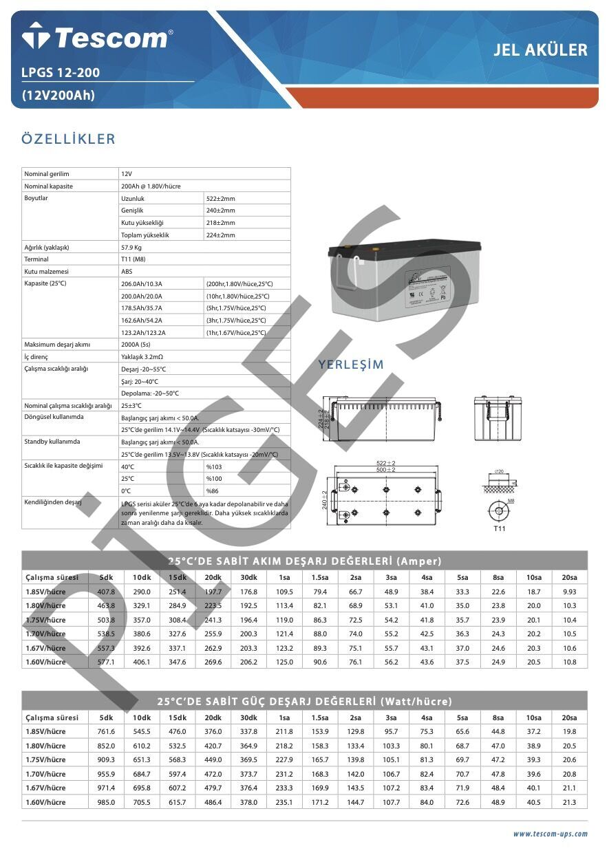 TESCOM LEOCH 12 VOLT 200 AH JEL AKÜ
