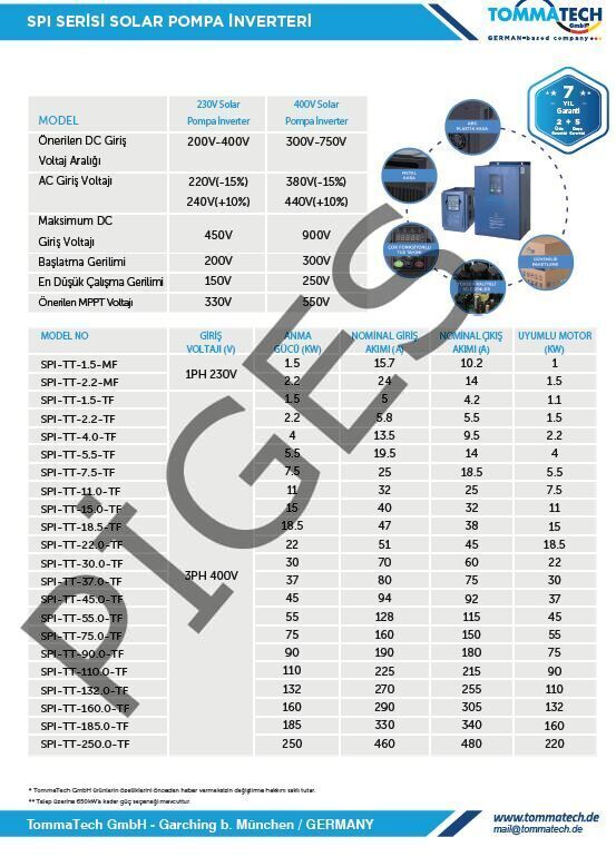 TommaTech 40hp/30 kW 900VDC 3 Faz/380VAC led ekran Solar Sulama Pompası İnverteri