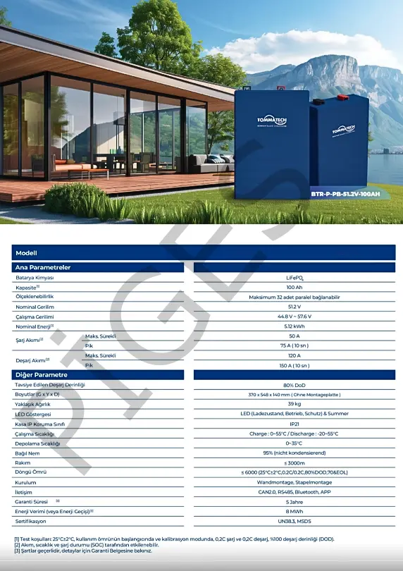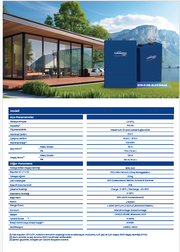 TommaTech® 51.2V 100Ah PB Serisi LFP Lityum Batarya