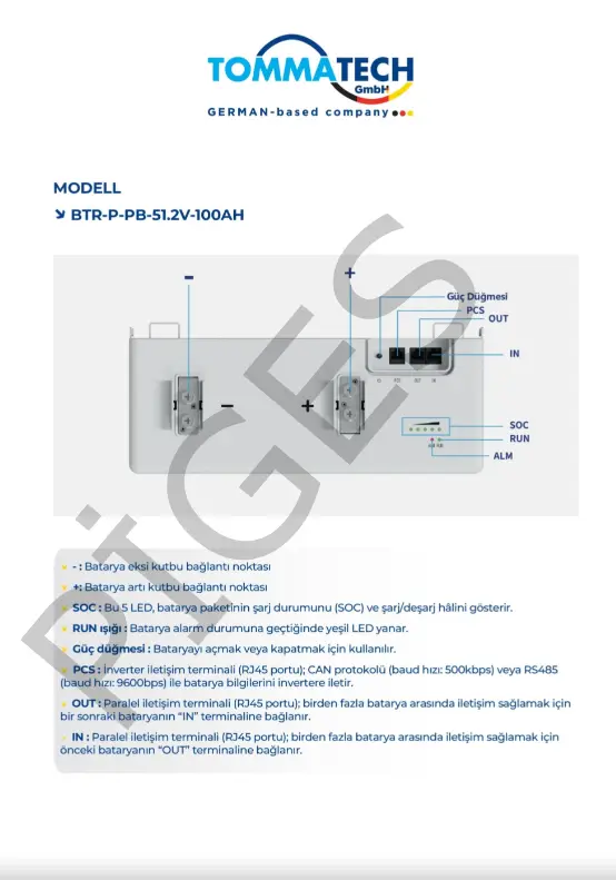 TommaTech 51.2V 100Ah LiFePO4 PB LFP Lityum Batarya