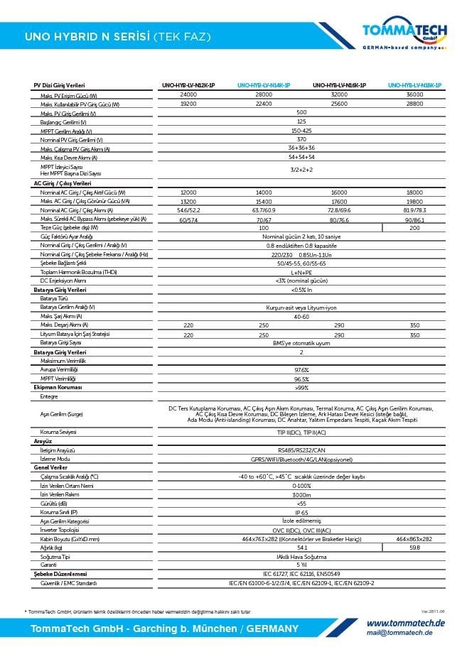 Enerji bağımsızlığınızı bir üst seviyeye taşımaya hazır mısınız? Uno Hybrid N Serisi, hem yeni kurulan sistemler hem de mevcut güneş enerjisi yatırımlarını güçlendirmek isteyenler için tasarlanmış, piyasanın en iddialı Düşük Voltaj (LV) Hibrit İnverter çözümüdür.