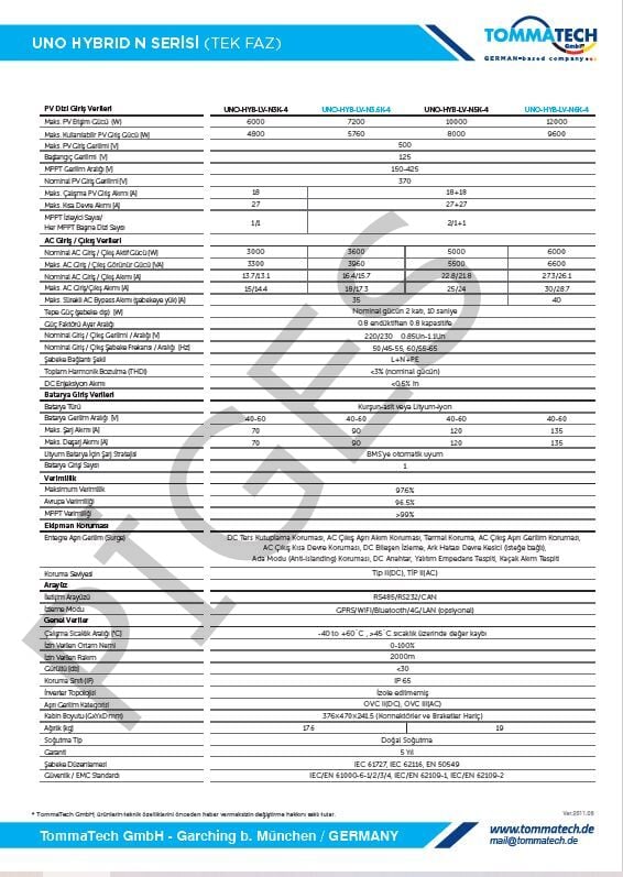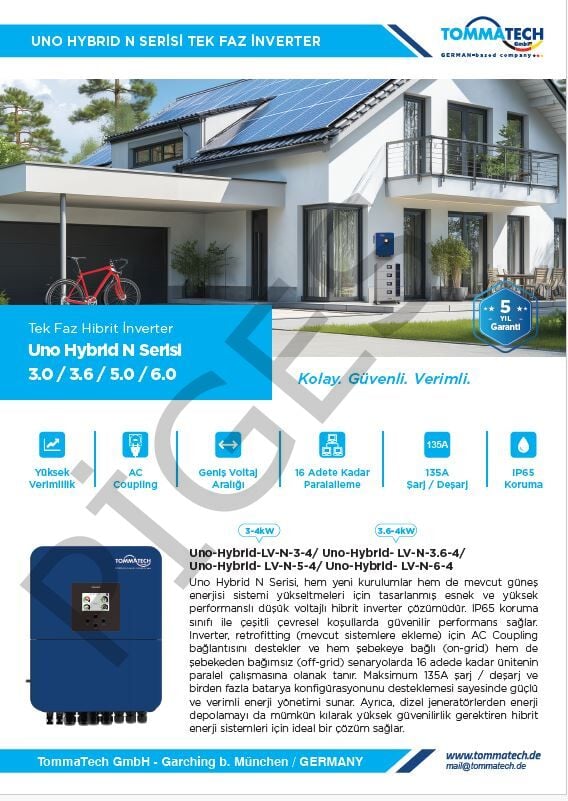 TommaTech Uno HİBRİT 6.0kW Tek Faz İnverter