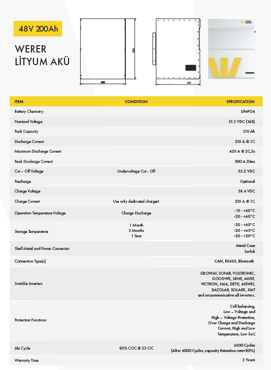 Bu ünite, serinin en güçlü ve kapsamlı modeli olan WERER ENERGY 51.2V 200Ah (10.7 kWh) versiyonudur. "WPU" (Werer Power Unit) serisi olarak adlandırılan bu batarya, sadece bir akü değil, bütünleşik bir enerji depolama istasyonu mantığıyla tasarlanmıştır.